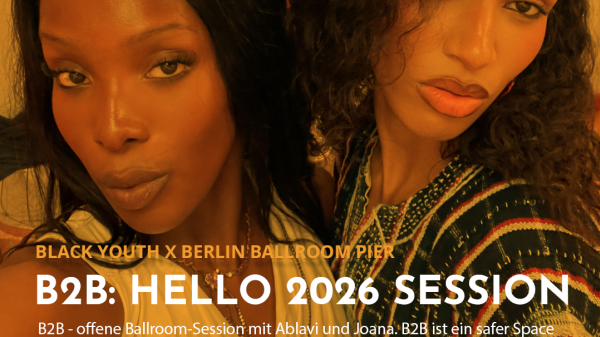 B2B - offene Ballroom-Sessions mit Ablavi und Joana. B2B ist ein safer Space für queere, trans* und gender-questioning Schwarze Menschen zwischen 16 - 27 Jahren.